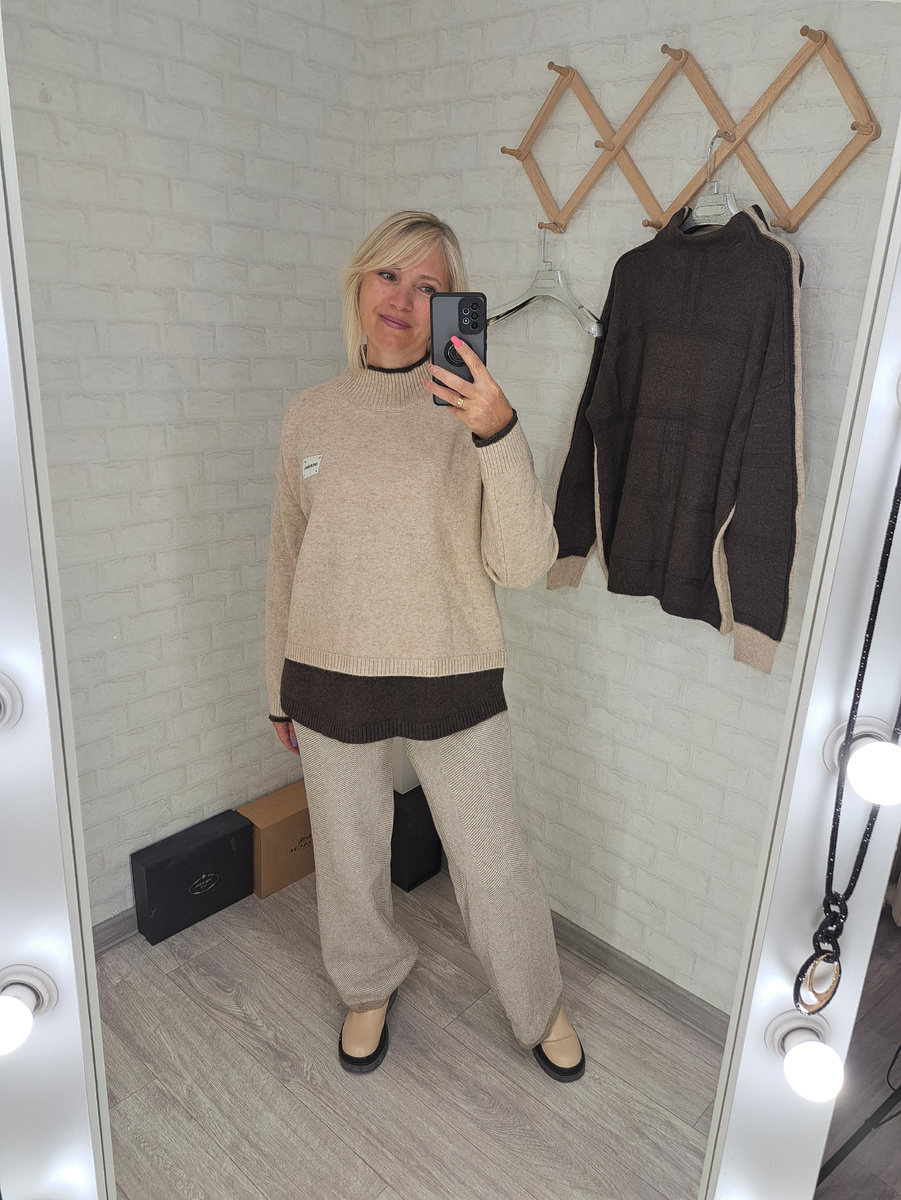 8. Лонгслив цвета горького шоколада и брюки из неопрена, все вещи приятны к телу