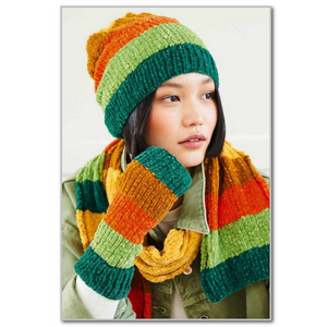 Шарф. Наберите 35 петель с помощью спиц 4 мм и изумрудно-зеленый. Перейдите на спицы 3,25 мм. Ряд 1 (лиц.): 4 изн. п., 1 лиц. п., * 1 изн. п., 1 лиц. п.; повторять от * до последних 4 петель, 4 изн. п. Ряд 2: 4 лиц. п., 1 изн. п., * 1 лиц. п., 1 изн. п.; повторять от * до последних 4 петель, 4 лиц. п. Эти 2 ряда образуют резинку 1/1 с краями изнаночной глади.