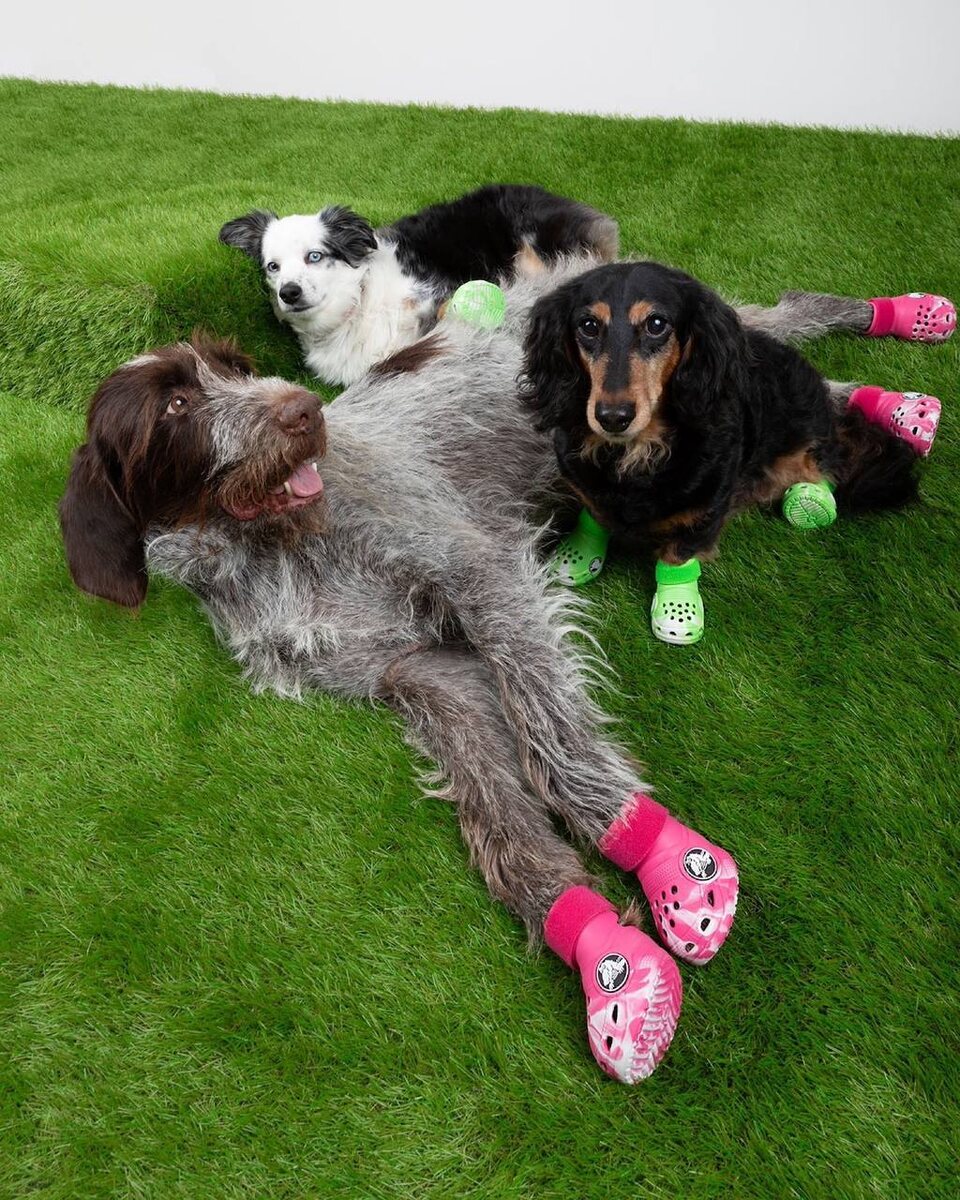 Конечно же, это были неоригинальные сабо. И вот наконец-то CROCS заметили эту милейшую идею и дропнули коллекцию тапатулек для наших четвероногих!🐶🎀 Цена такой резиновой пары составляет $50, а представлены они пока что только в двух цветах: розовом и зеленом Вы посмотрите, у них даже липучки есть, чтобы с лапок не спадали🥹
