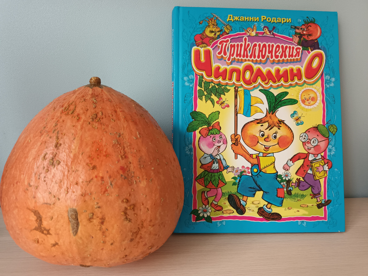 Хорошо читать эту сказку на даче, когда "герои" перед глазами - на грядках и ветках). Напомнила о любимой с детства сказке тема дня - тыква. Сначала Чиполлино пришел ко мне вот на такой пластинке, прослушанной бессчетное количество раз. Кто не любит аудиокниги, вспомните - разве вам не нравились в детстве сказки на пластинках? Ещё дома был вот такой диафильм: Бедный старый Чиполлоне случайно наступил на ногу принцу Лимону и оказался в тюрьме. А Чиполлино по наказу отца отправился странствовать по свету, набираться ума и знаний, помогать бедным и наказывать плутов и мошенников. Как же я сочувствовала бедному куму Тыкве, который все копил свои кирпичи и все никак не мог построить себе дом. А когда построил, в нем можно было только сидеть. Но даже и из такого домика его выгоняет сеньор Помидор под предлогом, что земля принадлежит графиням Вишням В детстве так остро воспринималась несправедливость власть имущих из этой сказки и так радостно было за Чиполлино, когда ему удавалось застав