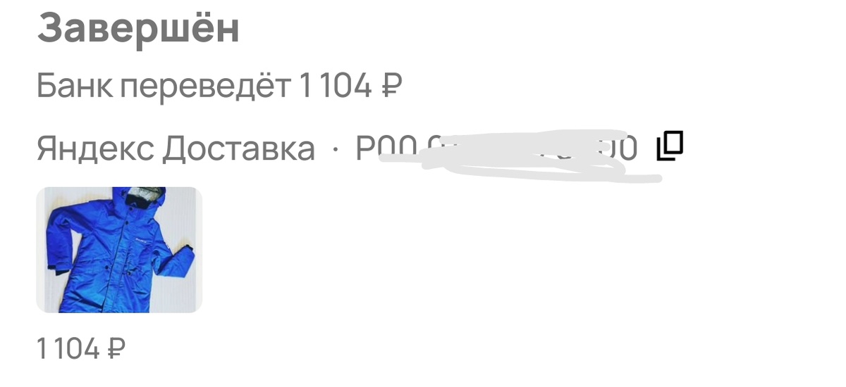 Пришла оплата за куртку, отправленную Авито доставкой - 1104 рубля.