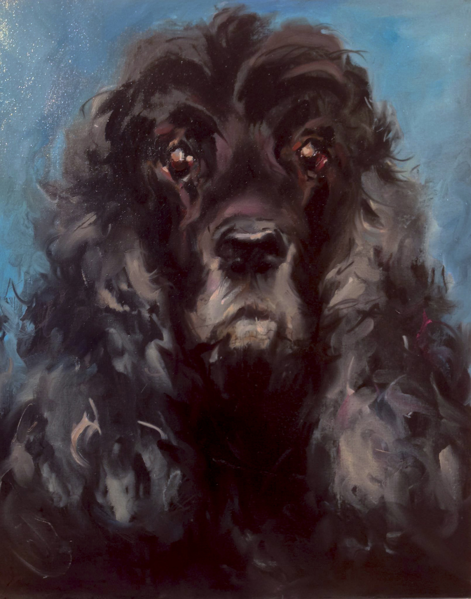 Например, портрет спаниеля Блэкки я написал именно по-черному, так как шерстка темная, логичнее прописать только несколько светлых прядок на черном фоне и готово. Оптимизация!