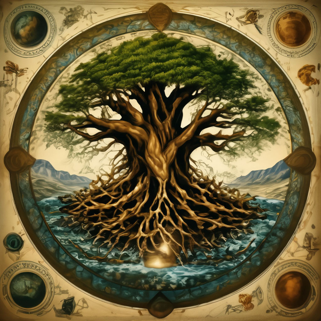 Давным-давно, когда не было ни миров, ни богов, вырос ясень Иггдрасиль или Лерад. Держит на себе это древо все миры и связывает их между собой.