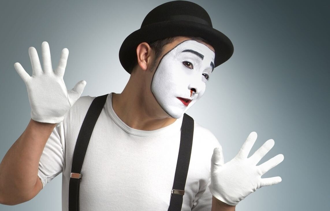 Хочу показать вам один эпизод. Уточнение перед эпизодом: 1. На первом курсе актёрского мастерства студенты весь год занимаются таким странным делом, которое в народе называется "беспредметка". Это умение работать без предметов)) Как дети. Относительно взрослые люди изучают технику работы с предметами, которых нет, с мебелью, с людьми. Говорят, это нужно для того, чтобы актёр мог себе представлять вес, текстуру, объём предмета. Всем своим телом представлять. Ибо и в театре, и в кино часто работают с бутафорией. Но когда ты поднимаешь картонный молот, зрители должны видеть, что молот неподъёмный, к примеру. Вот для этого целый год студенты и играют как дети. Ничего детского в этом нет. Весьма сложное занятие. Особенно ярко это умение можно видеть у мимов. Когда вот так актёр прильнул к стеклу, это вот она - беспредметка. Он представил себе стекло, плотность и прижался лицом и руками))) Как понимаете, для этого нужно, как минимум, воображение. А как максимум, тренировки. Конец перво