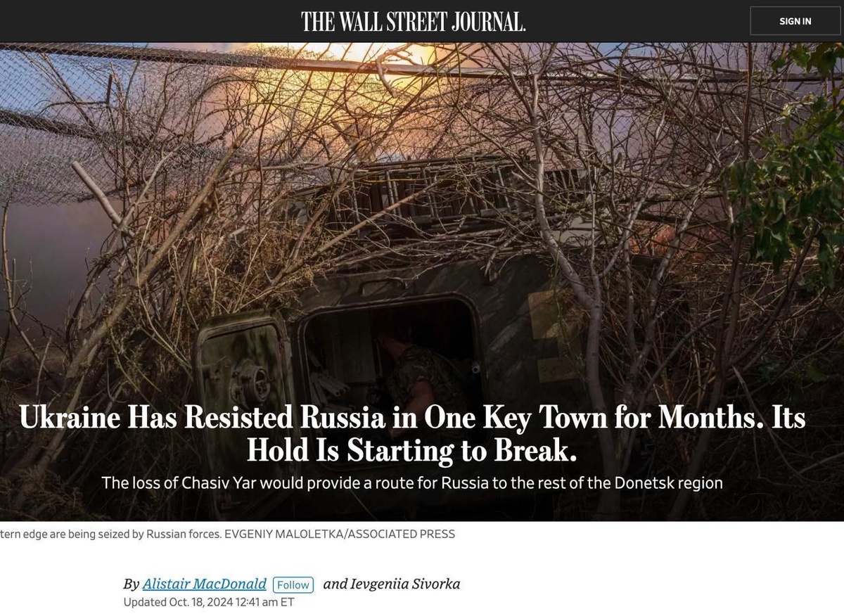 The Wall Street Journal отмечает в своем обзоре, что позиции ВСУ в Часовом Яре начинают ослабевать. На этой неделе россиянам удалось прорваться вперед на двух участках. «Достаточно допустить одну ошибку, и Часов Яр может пасть за считанные дни» , — цитируют командира роты ВСУ Ростислава Касьяненко американские журналисты. Российские войска смогли продвинуться к Часову Яру с восточной стороны. На данный момент идут активные бои за город. Украинские военные говорят, что российские беспилотные летательные аппараты не позволяют ВСУ пополнять запасы и направлять подкрепление в Часов Яр. Прорвав оборону ВСУ в Часовом Яре, пусские уже зашли на 2,5 километра западнее канала на юге населенного пункта. Украинские военные допускают быструю потерю города, который им удавалось оборонять по каналу последние пять-шесть месяцев. Отмечают, что это продвижение может означать значительный шаг России к захвату города. А потеря Часова Яра наряду с Покровском является ключевой в попытках Москвы захватить з