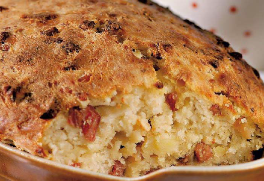 Простой, но изысканный пирог с копченым ароматом от варенокопченой грудинки и мягкой текстурой от картофеля. Простой, дешевый, нажористый вариант накормить всю семью. А как он пахнет при выпечке! ммм! Лучше всего этот пирог печь в прямоугольной форме 20х30, тогда время выпечки существенно сократится. но можно печь и в форме для кекса. 1. Варенокопченую грудинку режем кубиком и жарим на слабом огне, вытапливая жир. Нам нужен этот вкусный копченый жир, чтобы придать копченый вкус пирогу. Вытапливаем весь жир, но не до жестких шкварок, пусть грудинка будет чуть мягкая. 2. Яйца рубим крупным кубиком. 3. Картошку разминаем в пюре. Если использовть пюре ролтон, вкус не поменяется, вполне рабочий вариант. 4. Муку и сухие моментальные дрожжи перемешиваем. 5. Если у вас планетарный миксер, то все ингредиенты складываем в дежу и месим 10 минут.
