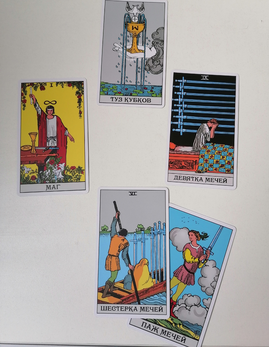 Прошу прощения за задержку, спешно исправляюсь. ☺️☺️☺️ Начнём с Олиной новой улыбки.😄 Ситуация сейчас: Маг. Уверенность в себе, своих силах. Сила, энергия, всё по плечу. Хочется что-то делать, чем-то заниматься, улыбаться во все 32. Ольга явно довольна результатом.😉 Что точно не надо делать: Девятка Мечей. Явно не стоит жалеть о том, что сделано. О чем тут, казалось бы можно жалеть? Если учесть, что меня душит жаба сходить зуб запломбировать в ближайшую стоматологию, жалеть можно о деньгах. Ну и о времени. Может есть мысль: а я на эти деньги могла бы купить тонну колбасы много чего в дом, семью... Отставить такие мысли, в общем. Чего стоит делать: Туз Кубков. Карта чистой радости... 😁 Понятно же - просто наслаждайтесь результатом! Ольга, но на всякий случай, обмывайте там новую улыбку аккуратнее😄 Чем закончится эта ситуация: Шестёрка Мечей (доп.карта Паж Мечей) Паж Мечей - это энтузиазм, отстаивание своей позиции, инициатива, споры. Шестёрка Мечей карта, говорящая о поездка