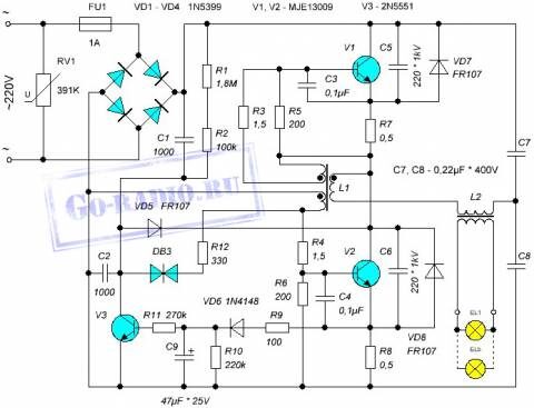 Обычные трансформаторы на 220 вольт, в силу своих больших размеров, веса и дороговизны производства, постепенно вытесняются лёгкими и надёжными электронными трансформаторами, обеспечивающими значительный ток при размерах меньше пачки сигарет. Как правило все они китайского производства, пусть даже на коробке и написано "Сделано в Германии". Принципиальная схема представляет из себя автогенератор, запускающийся только при подключении нагрузки (лампы). К достоинствам этих трансформаторов, прежде всего, следует отнести их малые габариты и вес, что позволяет устанавливать их практически где угодно. Некоторые модели современных осветительных приборов, рассчитанные на работу с галогенными лампами, содержат встроенные электронные трансформаторы, иногда даже по несколько штук. Такая схема применяется, например, в люстрах. Известны варианты, когда электронные трансформаторы устанавливаются в мебели для устройства внутренней подсветки полок и вешалок. Для устройства освещения помещ