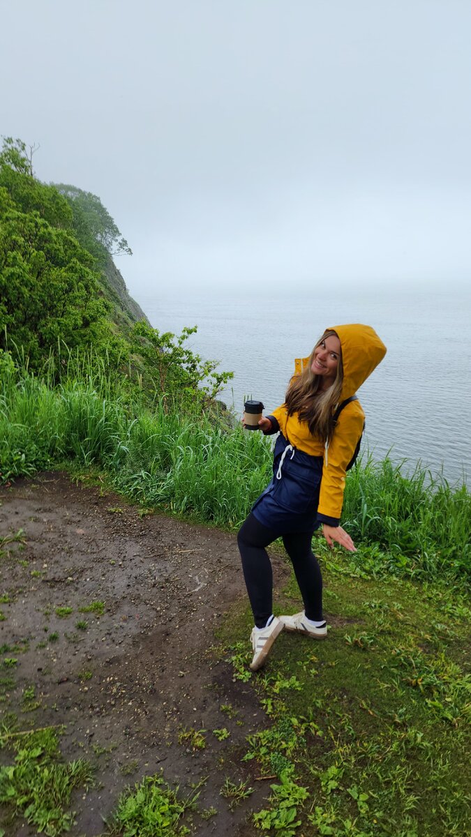 Прогуляйтесь по Никольской сопке — она находится в самом центре Петропавловска-Камчатского, именно отсюда началось моё путешествие. Это целый парк на горе! Шёл дождь, а молодой человек переживал, что со смотровой площадки ничего не будет видно из-за тумана. Мне дождь не доставил неудобств: дождевик, тёплая одежда и горячий кофе в руке сильно выручают в непогоду.