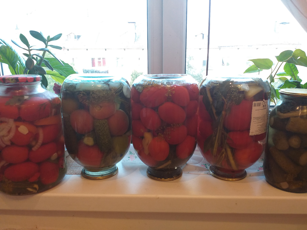 Осень- период заготовок. Я до сих пор не могу отучить себя закрутить что- то вкусное на зиму. Каждую осень божусь, что не буду, но наступают холода и руки ищут банки))) Лечо из кабачков. Овощи почистить и намыть, цукини порезать кубиками, морковь натереть на крупной тёрке, лук нарезать полукольцами. У перцев удалить семена, нарезать кубиком. Все овощи соединить и обжаривать -8 минут на среднем огне. Чеснок пропустить через пресс, добавить к овощам. Помидоры обдать кипятком, снять кожицу, пробить блендером или пропустить через мясорубку. Влить пюре в овощи, добавить сахар и соль- тушить 5 минут. Влить уксус, перемешать и тушить еще 3 минуты. Разложить по стерилизованным банкам, закатать. Банки перевернуть и укутать. Зимняя капуста. Капусту намыть и нарезать крупно. Очистить свеклу, морковь, чеснок- натереть на терке. Овощи смешать, заполнить стерильные банки. Воду, лавр, перец, уксус,сахар и соль довести до кипения. Залить маринад в банки, закатать. Помидоры маринованные на зиму. Помид