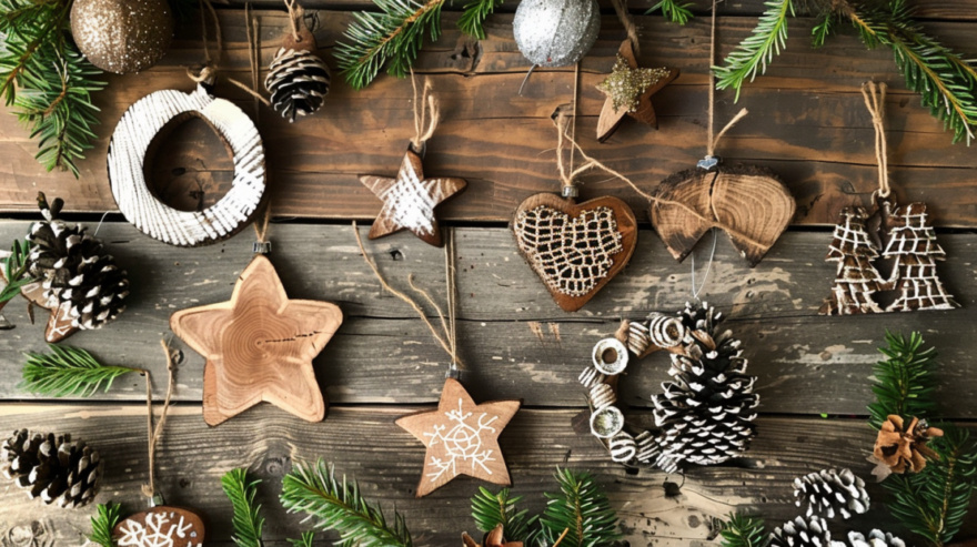 - Дерево. Классика, которая вряд ли выйдет из моды: миниатюрные елочки, звезды, снежинки, фигурки животных. Их расписывают или украшают резьбой.