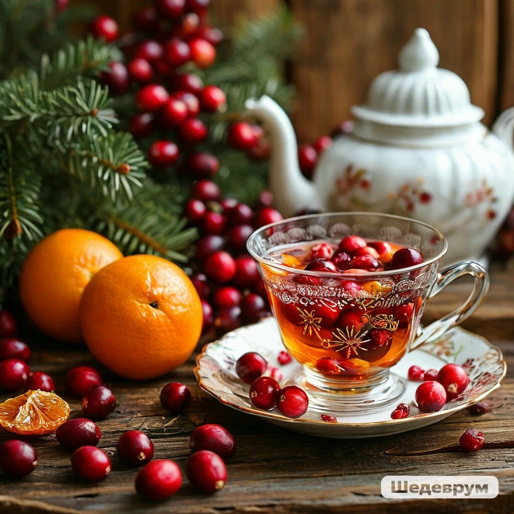 Ингредиенты: 2 мандарина 1 горсть клюквы 1 ветка розмарина 2 ветки тимьяна Способ приготовления: Нарежьте мандарин кольцами и положите в чайник. Туда же добавьте клюкву и слегка разомните ее. Добавьте розмарин, тимьян и залейте все кипятком. Дайте настояться 15-20 минут. Ингредиенты: 1 щепотка листового фруктового чая; 2 щепотки сухого чая каркаде; 1 звездочка аниса; 1 палочка корицы; Любые фрукты по вкусу; 200 мл горячей воды. Способ приготовления: Фруктовый чай и каркаде заварите в горячей, но не кипящей водой. Дайте напитку настояться 4 минуты. Перелейте его в стакан, добавив корицу и анис. По желанию в получившийся чай можно добавить 1 столовую ложку мелко нарезанных фруктов. В конце все перемешать. Ингредиенты: 40 г свежей или свежемороженой облепихи; 1/4 яблока; 1 ч.л. меда; 250 мл воды. Способ приготовления: Нарежьте яблоко на мелкие кусочки. Облепиху, яблоко и мед поместите в емкость. Залейте водой и поставьте на небольшой огонь на 15-20 минут, не доводя до кипения.