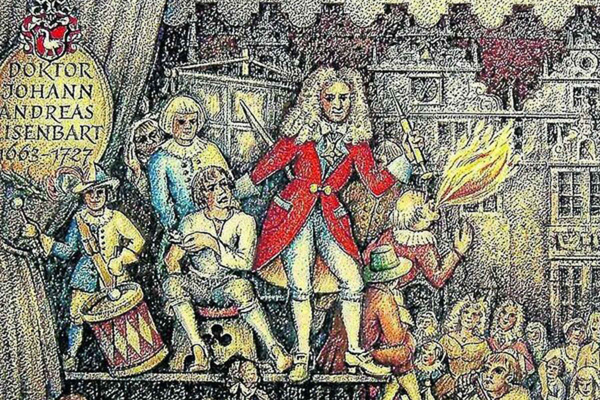 Впечатляет и продолжительность врачебной практики Айзенбарта – колесить по стране он начал в 1686 году и делал это в течение 30 лет, пока особым указом короля ярмарки и представления на площадях не были отменены. Пришлось доктору оперировать в трактирах, причём чаще всего он выставлял выпивку самым весёлым людям, которые заводили публику и создавали в помещении невообразимый шум!