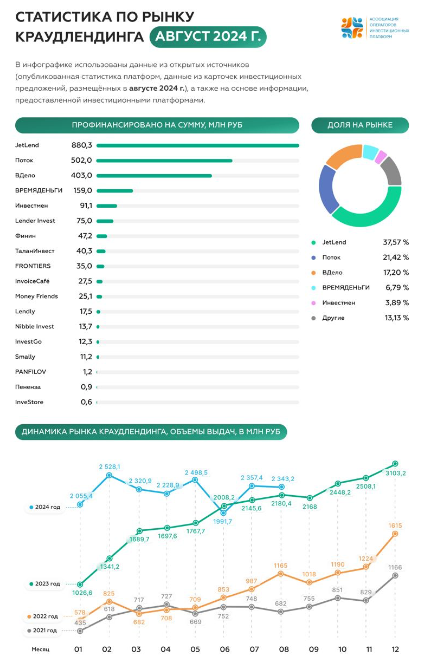 Никак не мог найти время обновить статус по пилоту инвестирования в голубые фишки отечественного крауда. Ключевая ставка растет нещадно, и 25 октября очередное поднятие (поговаривают ставки ОФЗ, что на 3%, но это не точно). На этом фоне любое кредитование, тем более альтернативное, требует пристального внимания и контроля рисков. В целом, ситуация в отчественном крауде непростая, темпы роста во второй половине 2024 года упали, крупнейшим игрокам приходится тяжело, с одной стороны, растет риск, дефолтов становится больше, высокая процентная ставка формирует badselection, с другой, привлекать средства становится сложнее, тк есть альтернатива на денежном рынке "без риска" или тех же корпоративных бондах, которые дают большую доходность с меньшим риском. Если вернуться к моим инвестициям, на этом фоне, обьем инвестиций в крауд с июня 2024 года я начал постепенно снижать, основные причины, падение доходности на крауде, особенно, заметный рост дефолтов на площадке "Поток", где и стал делать