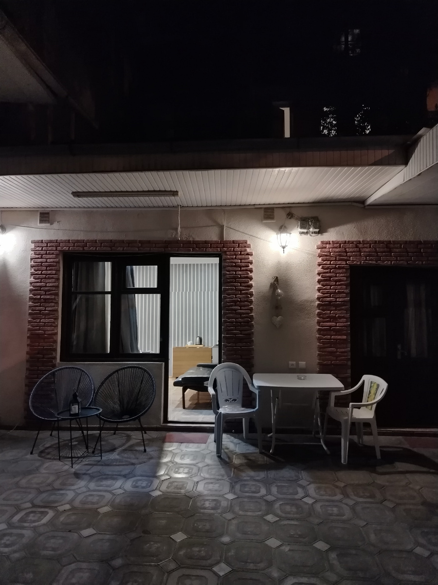 К сожалению, наша компания распалась. По разным семейным и прочим причинам основная часть нашей команды разъехалась по домам, а мы с Еленой, новым членом нашей компании, отправились вдвоем путешествовать дальше. И мы уже в Тбилиси! О нашем переезде напишу отдельно, потому что это тоже интересно и многим может быть полезно. А пока о первых впечатлениях о Тбилиси. Если говорить одним словом, то это восторг! Приехали мы уже вечером, пока добрались до отеля, было уже темно. Но этот небольшой дворик и комната на двоих, просторная и светлая, сразу легли на душу. Бросив вещи и немного повосхищавшись нашим новым, нормальным жильем, мы пошли погулять. Очень хотелось есть, так как день были в дороге. Хозяйка нашего отеля посоветовала нам кафе недалеко от дома "Сули", я так понимаю, от Сулико. Кафе оказалось очень симпатичным, уютным. Оно не рассчитано на поток, а больше "для своих", там и столиков немного. Но сделано все со вкусом. Мы заказали тушеные овощи - аджапсандал, хинкали и по бок
