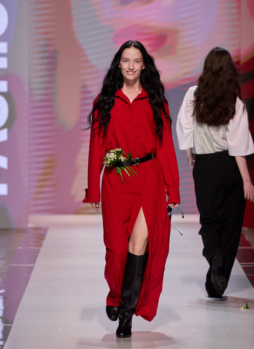 Кинокартина закрутилась на показе FASHION REBELS — бренд выпустил весенне-летнюю коллекцию, вдохновленную фильмом с Катрин Денев. В этот период девушки вопреки традициям массово переодеваются в брюки и джинсы, ставят себя на первое место и понимают свою уникальность и ценность. Ключевыми материалами шоу стали вельвет и экозамша, которые эффектно сочетались между собой. Воздушные платья, денимовые решения, как тренчи, юбки, да и сами брюки, обилие сочных оттенков в тандеме с пастельными гаммами, пайетки и цветные колготки, комфортные брюки, в которых девушки были готовы даже плясать, — все это про новую коллекцию FASHION REBELS. Частичку фильма мы можем наблюдать и на самих изделиях — дизайнер представил футболки с принтами в виде цитат героев. Получилась по-настоящему интересная коллекция с отсылками к настроению 60-х.