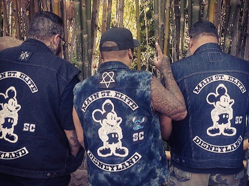 Байкеры и панки обожают шляться по калифорнийскому Диснейленду, петь песни из мультфильмов и забивать руки татуировками с Микки Маусом, которого считают своим тотемным животным. То есть не все, конечно же. Существуют 30 банд байкеров, которые настолько вдохновлены миром Диснея, что он пропитал их насквозь и теперь непонятно, что они любят больше — мотоциклы или Дональда Дака. Многие посетители Диснейленда в Анахайме, Калифорния, испытывают дискомфорт оттого, что вместо «нормальных» родителей с детьми здесь можно напороться на пузатых байкеров в драных джинсовых куртках с нашивками или перезревших потрепанных панков, обвешанных значками из Диснейленда. Посетители смущаются и теряют присутствие духа, когда банда обступает их, напевая что-нибудь из «Красавицы и Чудовища». А зря — тяжело найти людей добрее и приветливее, особенно в среде байкеров. Явление, которое журналисты назвали «банды Диснейленда» или «байкеры Диснейленда», связано со странным и необычным поворотом в жизни любителей п