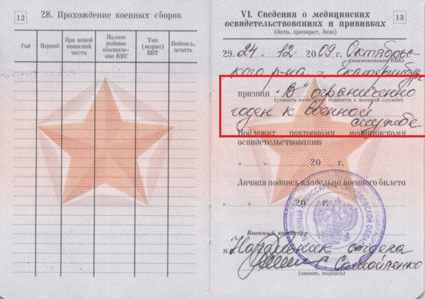 Положены ли единовременная и страховая выплаты при увольнении с военной службы, при наличии категории годности «В»? Последнее время участились вопросы, связанные с увольнением при наличии категории годности «В» вследствие военной травмы или заболевания, полученного в период военной службы. Разберём этот вопрос на основании анализа действующего законодательства. На основании части 1 статьи 4 Федерального закона от 28 марта 1998 г. N 52-ФЗ "Об обязательном государственном страховании жизни и здоровья военнослужащих....» страховым случаем является: «увольнение военнослужащего, проходящего военную службу по призыву, с военной службы, отчисление гражданина, призванного на военные сборы на воинскую должность, для которой штатом воинской части предусмотрено воинское звание до старшины (главного корабельного старшины) включительно, с военных сборов в связи с признанием их военно-врачебной комиссией не годными к военной службе или ограниченно годными к военной службе вследствие увечья (ран