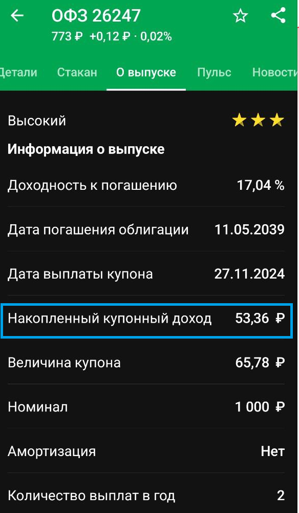 - Цена с НКД 787,55 рублей;