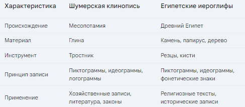 - Сравнение шумерской клинописи и египетских иероглифов