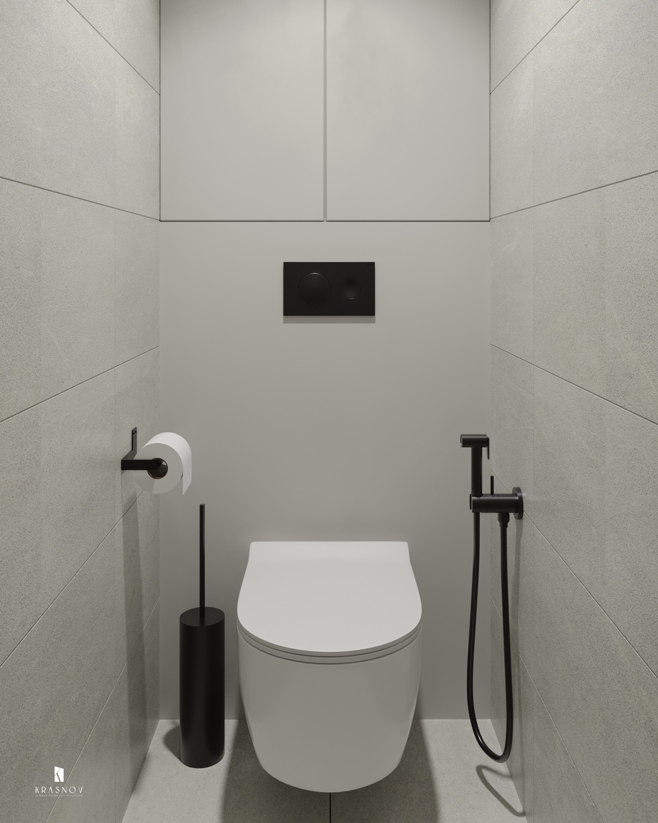 Это наш объект на Ленинском проспекте в Санкт-Петербурге. 🖤 В этом монохромном интерьере использовали классические черные акценты, которые оттеняют светлую цветовую палитру. Также объема придает ненавязчивая фактура керамогранита в сочетании с матовой однотонной стеной инсталляции. Получился очень сдержанный и лаконичный дизайн, который при всей своей простоте не выглядит плоским и скучным. А как вам такой интерьер? Поделитесь мнением в комментариях 👇 Больше пользы и классных интерьеров в Телеграм канале студии krasnov_d - https://t.me/+XuhDDI9cYlo4MjIy