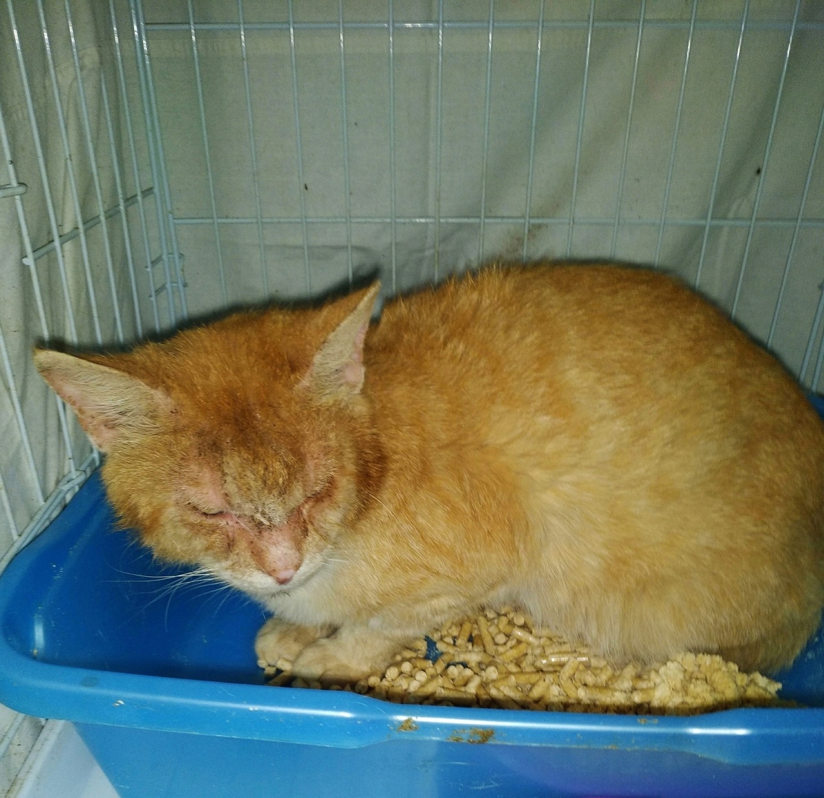В середине июля Ирина разговорилась со мной, поделилась, что один из котиков приходит кормиться в очень плохом состоянии. Я попросила его фото. Она мне его скинула 22 июля. Я отправила в «Приют надежды» и Юноне. В «Приюте надежды» сказали, что надо кота изолировать от всех и лечить, дело такое, на улице не вылечишь.