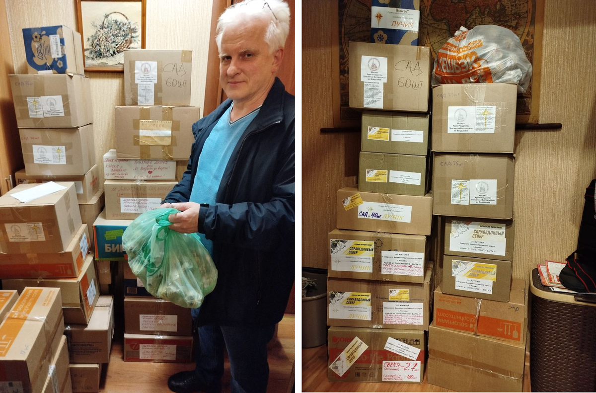 Благодаря вашему неравнодушию, друзья, нам удалось за очень короткий срок сформировать помощь сразу в несколько подразделений: * блиндажные свечи -50 шт.; * розжиг; * САДы(сухой армейский душ)-245 шт.; * влажные салфетки-7 кор.; * бинты-30 шт.; * кровоостанавливающие гидрогелевые повязки и салфетки-20 шт.; * предметы белья(носки - 2уп., трусы-1 уп., футболки-1 уп.). А Олег передал нам два мешка носилок-волокуш, сделанные руками прихожан Храма Георгия Победоносца в Коптево, за что им низкий поклон и огромное спасибо Олегу. * Носилки-волокуши - 2 мешка; * САДы - 300 шт.; * влажные салфетки - 8 уп.; * жгуты кровоостанавливающие - 35 шт.; * бинты - 1 уп.(30 шт.) * Носки - 80 пар; * марля, белье постельное. Прекрасно, когда разные волонтерские объединения, группы взаимодействуют друг с другом, ведь это дает больше возможностей для оказания более оперативной помощи по востребованным позициям нашим ребятам за л
