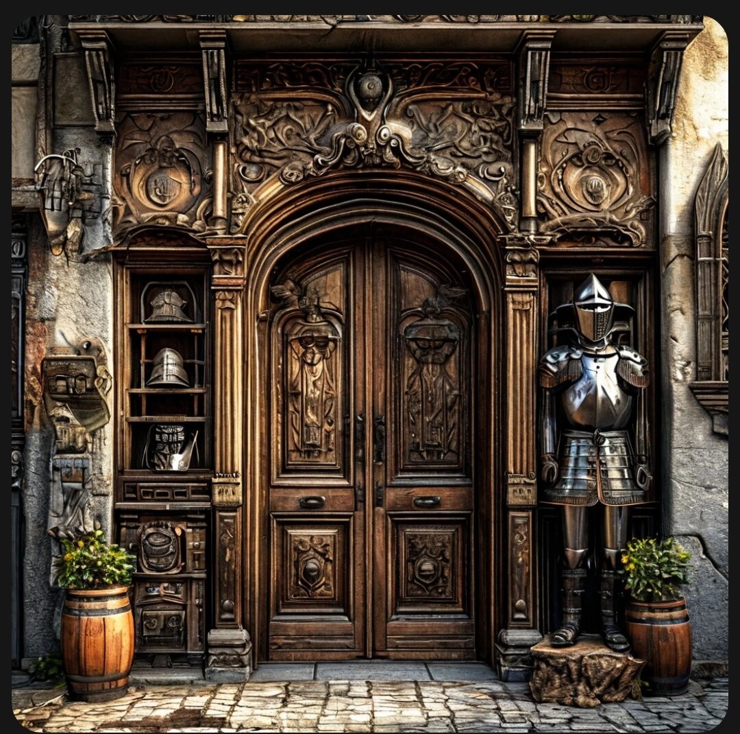 Это меня сразу замотивировало ,на более тщательные исследование местного ассортимента. Когда мы оказались внутри, то на наши лица стоило посмотреть. Снаружи казалось, что у здания всего два этажа и чердак, но внутри были просто огромные шкафы с оружием, разной степени привлекательности. Глаза разбегались от выбора, а в голове возникал вопрос о том, как всё здесь поместилось? Посмотря на Эмму я понял, что она тоже была удивлена. Лишь блондин, закинув руки за голову шёл будто у себя дома.