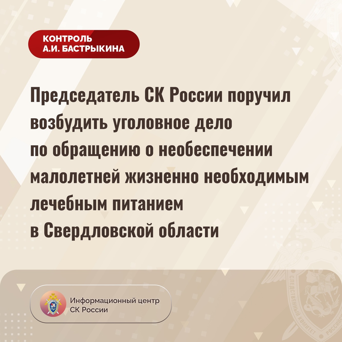 Председатель СК России поручил возбудить уголовное дело по обращению о необеспечении малолетней жизненно необходимым лечебным питанием в Свердловской области
