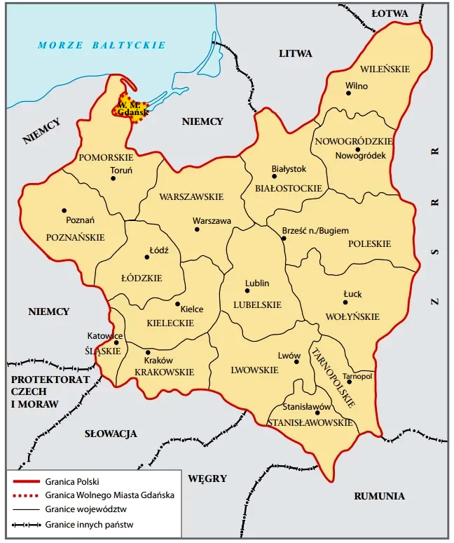 - Вольный город Данциг (1920—1939), статус был предоставлен по Версальскому мирному договору, от 1919 года;