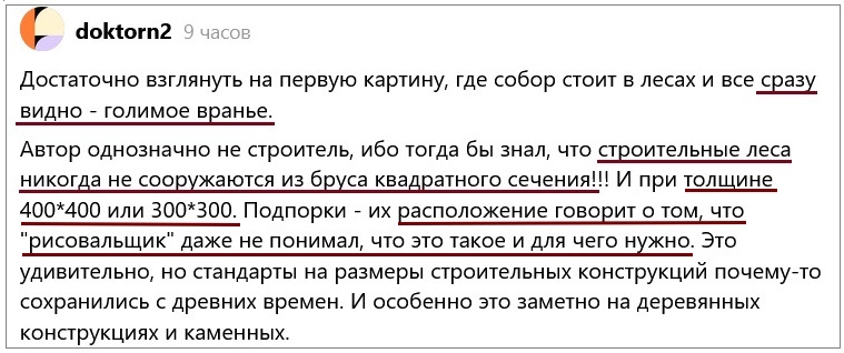Помнится мне, некоего профана не устраивало квадратное сечение деталей лесов для поднятия колонн Исаакиевского собора и Александровской колонны. Он с апломбом утверждал, что строительных лесов квадратного сечения никогда не сооружали: