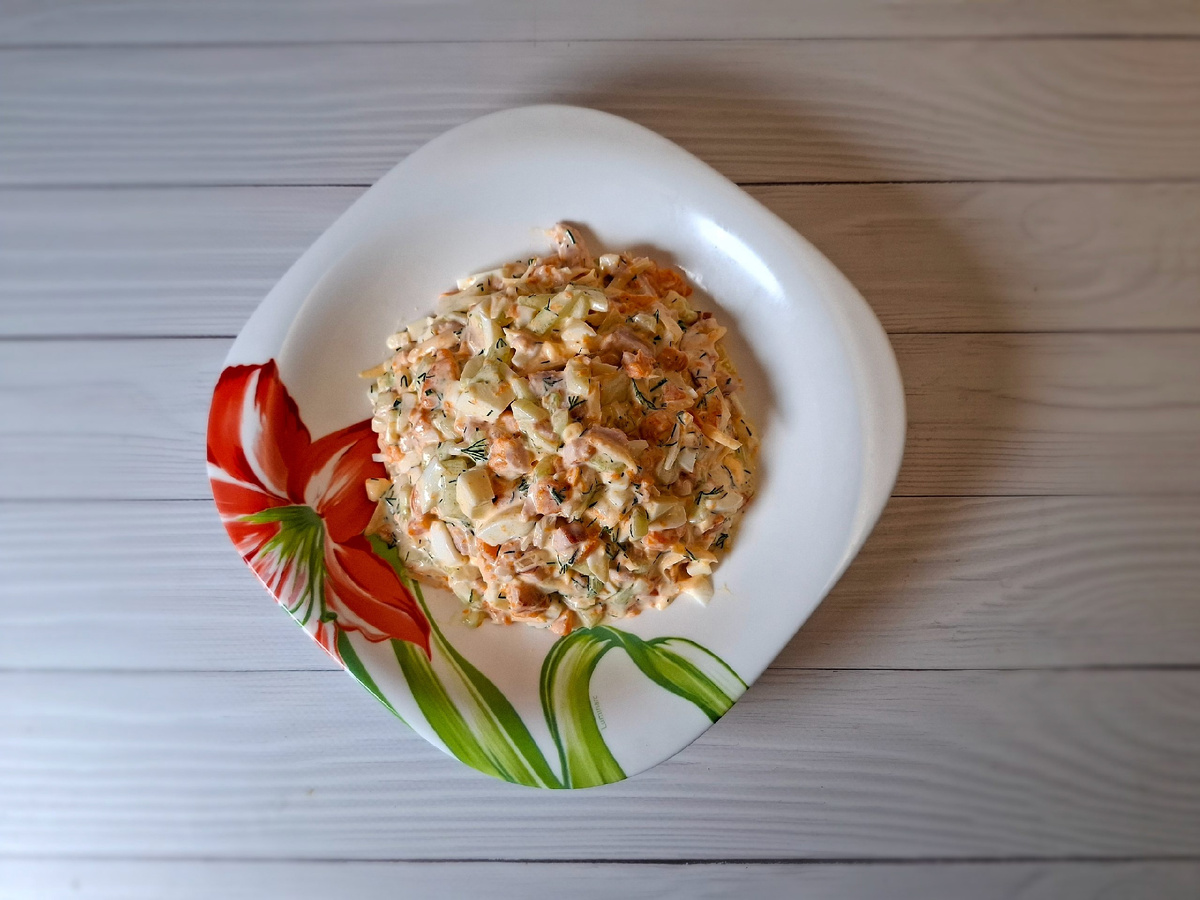 После облома с Селедкой под шубой, я морально отдохнула, зализала раны, и решила сделать - все-таки себе салат с майонезом. Потому что у меня в холодильнике - вы удивитесь! - была еще одна пачка точно такого же майонеза, но не открытая. Для новых читателей сообщаю, что живу я в Самаре, и рассказываю о еде, которая меня окружает. О том, что я ем, планирую съесть или не планирую по каким-либо причинам. Это основная тема блога. Да - это все, что я хочу поведать миру. Готовить при этом я не умею и не люблю. Фото своей ежедневной еды я делаю перед тем как ее съесть (то есть на иллюстрациях не натюрморты и не образцы сервировки - это моя реальная еда в разном фоновом оформлении) Иногда я пишу еще о чем-то, на предмет "хочется поболтать". Приветствуются фото вашей реальной еды и реальные рецепты, которыми вы пользуетесь. Сперва я хотела сделать Оливье, чтобы не повторяться. Потом выяснила, что в доме нет горошка. Потом заглянула в холодильник, нашла там разные огрызки, и решила, что сделаю с