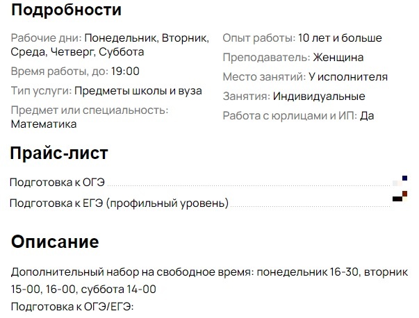 Решила дать объявление на Авито для того, чтобы заполнить пару "окон" в расписании. Тот, кто размещал сам, тот знает, что там заполняется анкета со стандартными вопросами Вот часть моего объявления Скажите, как надо читать этот текст, чтобы прислать такое сообщение Во-первых, седьмой класс (в объявление указано про подготовку к экзамену!), во-вторых, так как ребёнок учится с 13-00, то ни одно из указанных "окон" им не подходит. Зачем пишут? На авось? Следующее сообщение В объвлении нет услуги "ЕГЭ, база" и указано, что занятия "У исполнителя". Зачем пишут? Ещё одно потрясающее обращение Обратите внимание на дату, сегодня 30 октября. Ответа нет. Возможно, человек редко заходит на Авито? Но ведь сообщение прочитано! Трудно дать ответ, или человек не знает в какую смену занимается ребёнок? Нужен репетитор или нет? Были ещё вопросы (в отдельных сообщениях): Занятия индивидуальные или групповые? Место проведения занятий (на моём фото не видно, но в объявлении указан точный адрес и место на