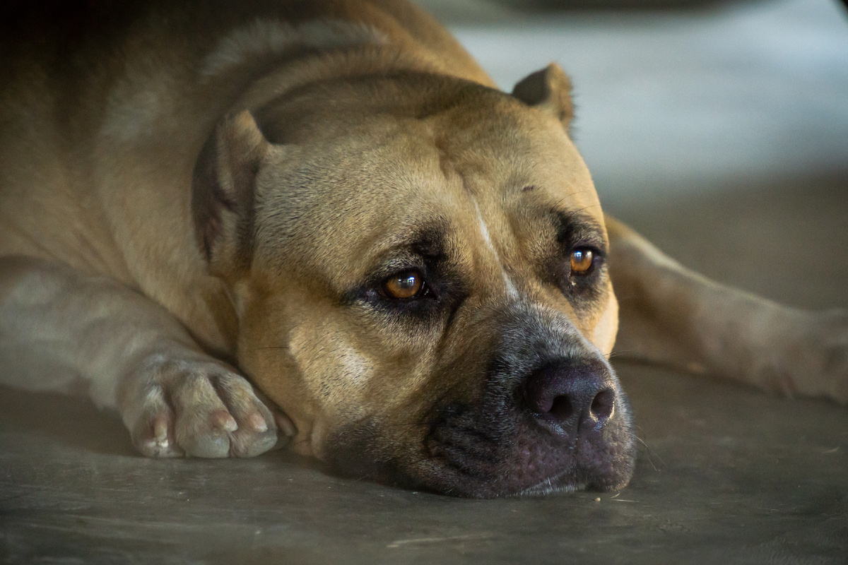 Он приблизился к собаке, надеясь, что у неё проснется совесть и она уберется прочь. Не сработало. Огромный пес продолжал лежать на своем месте.
