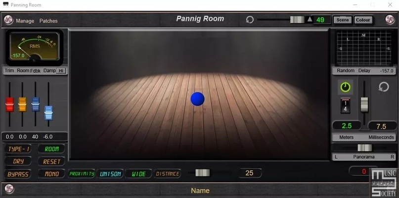 Плагин Panning Room поможет с размещением инструментов в виртуальном пространстве. В специфике своей работы он опирается на уменьшение громкости (Removal) и высоких частот (Hi Cut), а также на соотношения прямого и отраженного сигнала (Pre delay). Прибор может оказаться полезен начинающим и опытным музыкантам в целях, когда нужно быстро добиться хорошего результата размещения инструментов в пространстве, особенно пока вы еще не полностью овладели подобными навыками самостоятельно. Как рекомендует разработчик, чтобы добиться большей реалистичности, предварительно установите для Room одинаковую громкость всех инструментов. Отключите прямой сигнал (DRY) на плагине с помощью фейдера Trim установите громкость на -30 дБ. Тоже для всех инструментов. Также параметр "Random" (Случайность) включает случайное значение обратной связи (Feedback) для каждой из шести задержек сигнала. В недавнем обновлении плагина под версией 2.02 появились следующие нововведения: Реализованы изменения во внешнем ви