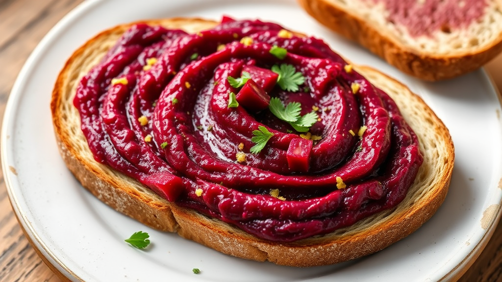 Вкусный перекус за 3 минуты. Намазка для бутербродов и наполнитель для праздничных корзинок Давайте поговорим о простом, но восхитительном рецепте, который станет вашим верным спутником на завтрак и в качестве закуски к вечернему чаю. Это не просто намазка — это настоящий вкусный взрыв, который украсит ваш стол и подарит радость всем, кто его попробует! Итак, нам потребуется: — 200 г мягкого творога — выбирайте экосертифицированный, от местного производителя. Лучше всего, если он будет от коровы, гуляющей по зелёным полям, а не от фермы, что заливает коров всякой химией. — 1 небольшая свекла — да, именно она! Она подойдёт не только для борща, но и в качестве яркого акцента в нашем блюде. — 1-2 ложки сметаны — домашняя, конечно. Можно заменить на кефир для большей легкости, но сметана — это уже классика. — Соль и перец по вкусу. — Чуть-чуть зелени по желанию: укроп или петрушка внесут свежесть и летнее настроение даже зимой. — Несколько капель лимонно
