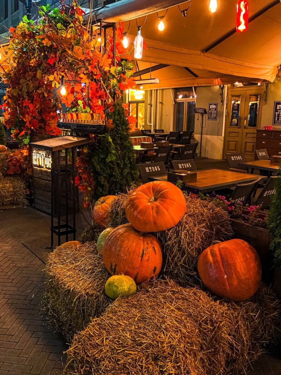 Популярные заведения на главной пешеходной улице Казани — Баумана — погрузились в атмосферу приближающегося Хэллоуина. Фото: Соцсети Кафе, бары и рестораны украсили свои входы и террасы в соответствии с тематикой праздника, создавая атмосферу разгара осени с нотками мистики. Особенно выделяются яркие осенние композиции из листьев всех оттенков оранжевого и красного, обрамляющие входы в заведения. Гирлянды из тыкв разных размеров и оттенков, уложенные на соломе, придают улице праздничный вид. Вечером улица Баумана преображается благодаря мягкому свету многочисленных гирлянд и декоративных фонарей. Ранее мы писали, что Татарстан и Республика Сербская подписали план сотрудничества в рамках саммита БРИКС в Казани.