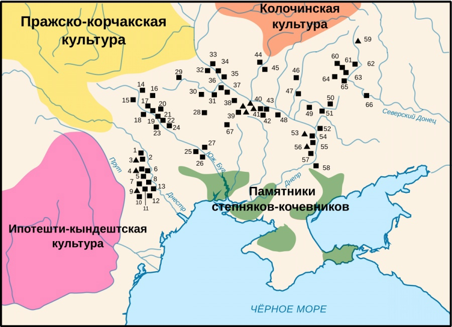 Впрочем, уже вскоре их положение пошатнулось. После крайнего набега 537 г. по какой-то причине между словенами и антами началась война. По всей видимости, лидирующее положение антов объяснялось их большей консолидацией по сравнению с западными родственниками. Но, разгром Хильбудия (вряд ли он тащился к антам, когда рядом были дунайские словене!) и последующее участие в разграблении балканских провинций привели к тому, что у словен также сложился более крепкий военно-политический союз. Причем, есть основания полагать, что этот союз был даже прогрессивнее, чем у антов. Трудно сказать, насколько он был обширным. В него безусловно входила территория Ипотештинской культуры. Я, вслед за С.В. Алексеевым, полагал, что центр этого объединения находился на Волыни, в городище Зимно. Анализ источников, проделанный С.В. Назиным, И. Коломийцевым и другими, показывает, что этноним «словене» первоначально относился к носителям ипотештинской культуры (Молдавия, Олтения, Мунтения). Судя по имеющимся источникам, это было достаточно развитое, богатое и консолидированное сообщество. Именно оно стало лидировать в славянском мире. Племена пражской культуры, расселявшиеся на севере от Карпат и ипотештинцев, представляли собой «словен второго порядка». Могли ли они входить в «Словенское царство» ипотештинцев? Очень трудно ответить на этот вопрос. Все-таки Волынь и другие «пражские» земли были весьма удалены от ипотештинцев, отделены большими реками, высокими горами и лесами. На мысль о том, что именно волынская территория была политическим центром «Словенского царства», наводит только Зимно – единственное известное укрепление славянских племен этого времени. Если связь между ипотештинцами и Зимно реально была, то она могла быть обратной – ипотештинцы основали свою крепость на землях союзников. Но, более вероятно все таки, что обе политии – «Словенское царство» на Дунае и Зимно на Волыни – никак не были связаны друг с другом.