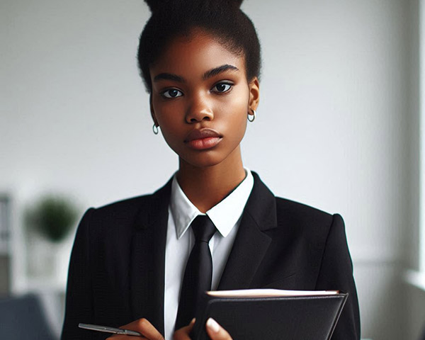 Одетая в полном соответствии с местными правилами в чёрный костюм, белую блузку и чёрные туфли, она держалась прямо как в строю. Волосы гладко зачесаны назад и собраны в бан. Минимум косметики и украшений. Это была та самая практикантка, которую он заметил ещё на собрании. Как её? Невилл?