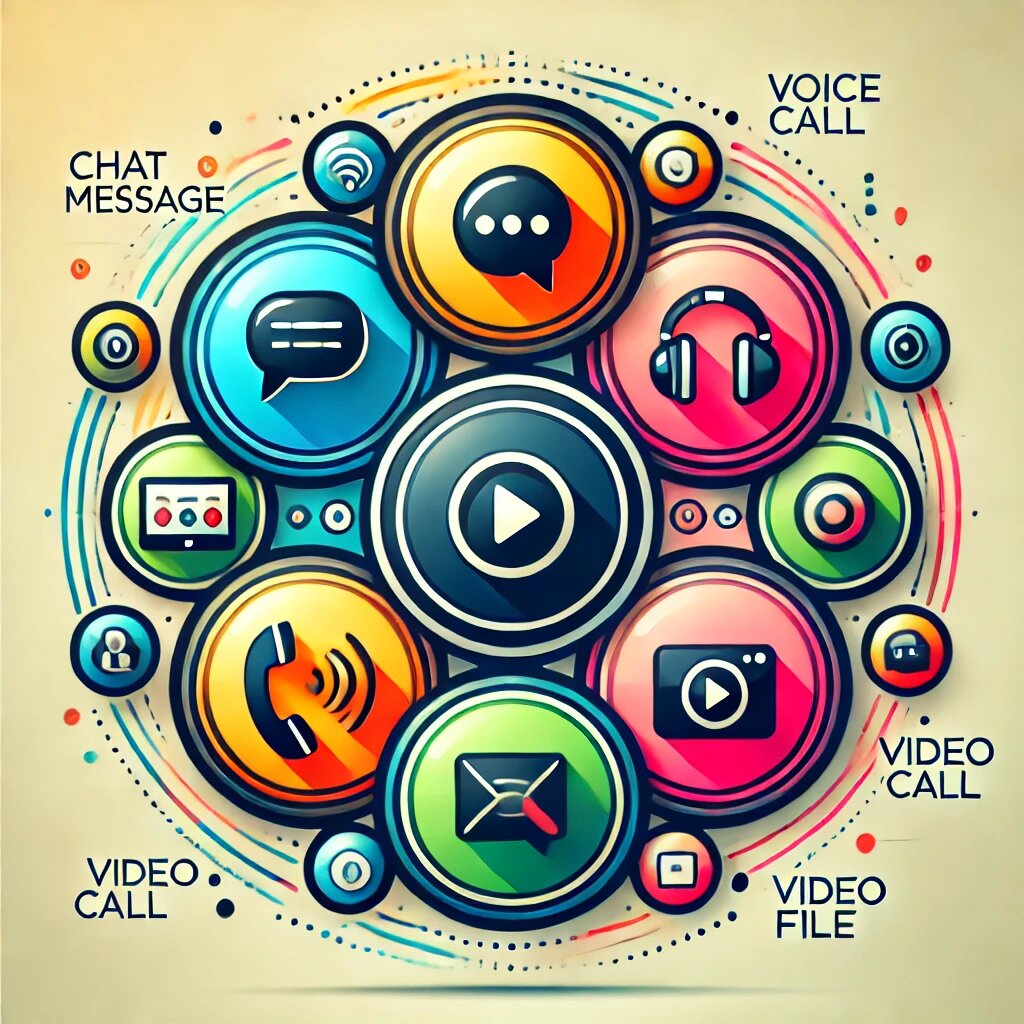 - Чаты: Текстовые сообщения с поддержкой отправки файлов, изображений, видео и других медиафайлов.