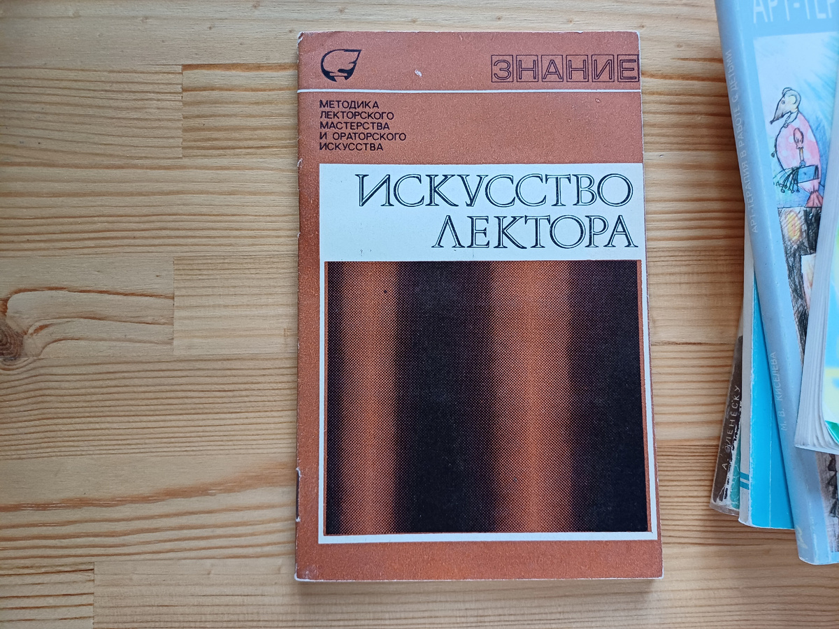 Искусство лектора. Методика лекторского мастерства и ораторского искусства, 1975 г. Коллектив авторов В книге даются рекомендации по лекторскому искусству - как правильно строить лекции, какие выразительные средства использовать, какие качества речи присущи настоящему лектору«Искусство лектора» — сборник, изданный в 1975 году издательством «Знание». Составитель: В. В. Одинцов. Объём: 93, 2 с. Аннотация: авторы сборника, основываясь на большом фактическом материале и данных различных общественных наук, стремятся помочь лектору в определении специфики лекции, в умении построить выступление с учётом характера аудитории, выразить свои мысли убедительно и точно, передать содержание простым и выразительным словом. Книга рассчитана на лекторов, пропагандистов СОДЕРЖАНИЕ ОТ СОСТАВИТЕЛЯ 3. М. КАРДАШЕНКО, С. М. КОСОЛАПОВ. УСТНАЯ ПРО- ПАГАНДА И СРЕДСТВА МАССОВОЙ ИНФОРМАЦИИ. М. Н. АЛЕКСЕЕВ. КАК ВВОДИТЬ И РАСКРЫВАТЬ ПОня- ТИЯ В ЛЕКЦИИ. Н. Н. ПОСПЕЛОВ. С УЧЕТОМ АУДИТОРИИ В. П. ЧИХАЧЕВ. СЛО