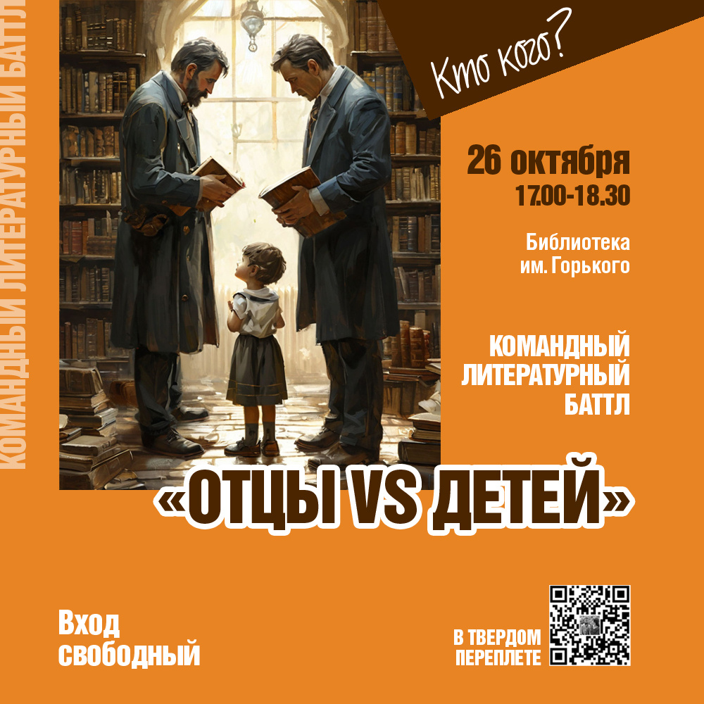 Сообщество «В твёрдом переплёте» подготовило ряд ярких встреч на «Тверском переплёте». Привлечет внимание командный литературный батл «Отцы vs детей», который начнется 26 октября в 17.00. На стороне отцов – литературный критик и дважды дедушка Владислав Толстов, журналист и отец двоих детей Сергей Алексеев, арт-блогер, отец взрослой дочери Артур Пашков. На стороне детей — интеллектуал Даниил Малышев и студент ПМиК ТвГУ Марк Вилкочинскас, тверской концептуалист и программист Стефан Вилкочинскас. Эксперт — тверской поэт, краевед, библиотекарь, многодетный отец Святослав Михня. Вести встречу и раскрывать конфликт поколений будет женщина – журналист и координатор «Тверского переплета» Татьяна Иванченко. А рассудит публика. На протяжении 7 раундов отцы и дети будут обмениваться мнениями по животрепещущим вопросам искусства и жизни. Среди тем: читают ли наши дети и что? Дутые фигуры современной литературы. Нужна ли современному массовому человеку поэзия? Подпольная литература как явление. Эв