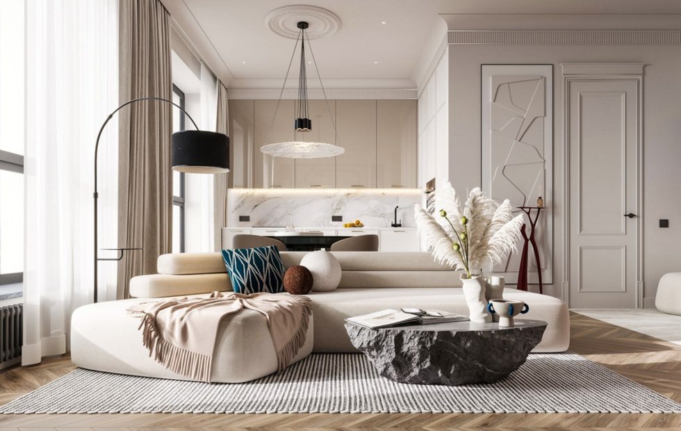 Уютный интерьер в теплой палитре и с выразительными фактурами Место: Москва Тип дома: Новостройка Метраж: 71,1 кв. м Застройщик: Группа «САМОЛЕТ» Жк NOVA Комнаты: 3 Cанузлы: 2 В основе этого проекта ЖК NOVA от застройщика «Самолет» — благородные светлые оттенки и игра фактур. В трехкомнатной квартире с большими окнами и высокими потолками есть просторная кухня-гостиная, мастер-спальня со своим санузлом и гардеробной, детская, прихожая и санузел. Главное преимущество планировки — возможность трансформировать пространство под нужды жильцов и под различные цели. В ней сохранена удобная геометрия комнат, предусмотрены ниши, продумана расстановка мебели и техники, учтены естественное освещение и все тонкости инженерных коммуникаций. В просторной кухне-гостиной есть ниша для угловой кухни и много свободного пространства для того, чтобы удобно распланировать функциональные зоны и поставить всю необходимую мебель. Стены окрашены стойкой акриловой краской в базовом светлом оттенке. На его фоне