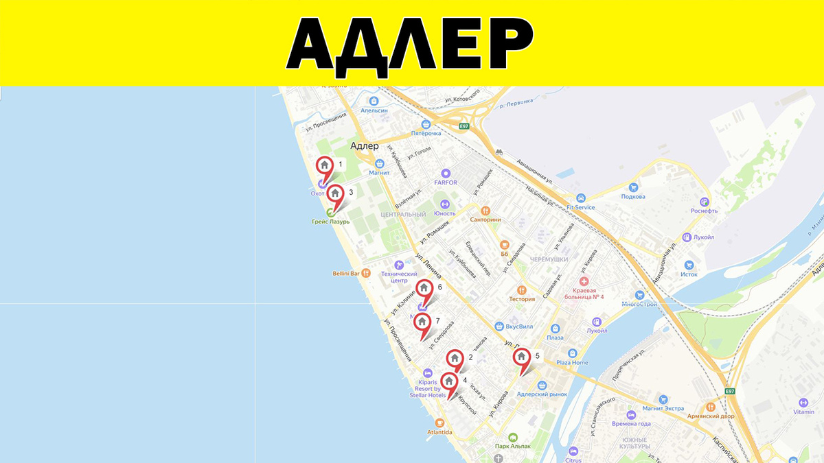 Отель Касабланка находится в сердце Адлерского района Большого Сочи, всего в 4 километрах от аэропорта и в 3 километрах от железнодорожного вокзала Адлер.