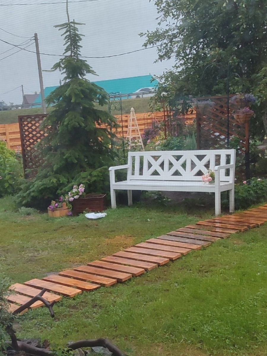 Начну с хорошей новости. До весны 4 понедельника!! Ура-а-а! ❤️❤️❤️ К теме🤗 Как я была счастлива, когда мы её привезли и установили. Тяжёлая, большая, светящаяся белым, чистым светом! Я так мечтала, так хотела что-то подобное. Душа пела! Как бы не было жарко, она всегда прохладная. Свежо, светло. Сидеть на ней одно удовольствие. Когда солнышко идёт к закату скамейка попадает в тень от яблони. Обожаю это время суток. На неё садишься и перед тобой огромный экран, бескрайнее небо. Листья на ветках слегка шуршат, убаюкивая мою душу. Я сижу, погружённая в раздумья, и наблюдаю, как солнечные лучи постепенно исчезают. А если на небе огромные облака меня за уши не оттащить. Даже намечтала прошлым летом кое-что. Хочу купить кинотеатр, чтоб на улице фильмы можно было смотреть🥹Классно, да? В общем она идеально вписалась в мой сад. Доброго вам сегодня, мои хорошие. Я даже на ней умудрялась полежать. Мама сидела на крылечке, занималась своими делами. А я кидала на скамейку одеяло, подушку и ухо