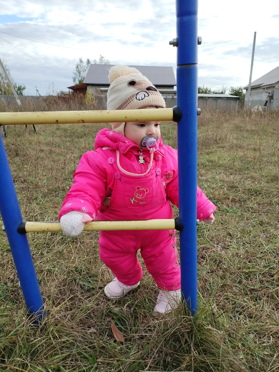 Посидели на бордюрчике, поиграли в шарики. Пробовали и игрушками разными ее выманить, и горкой завлечь. Но я-то знаю, если начала плакать так сильно, ни на что реагировать не будет. Будет держаться за меня мертвой хваткой. Надеюсь, это временно из-за бессонной ночи, и повторения не будет.