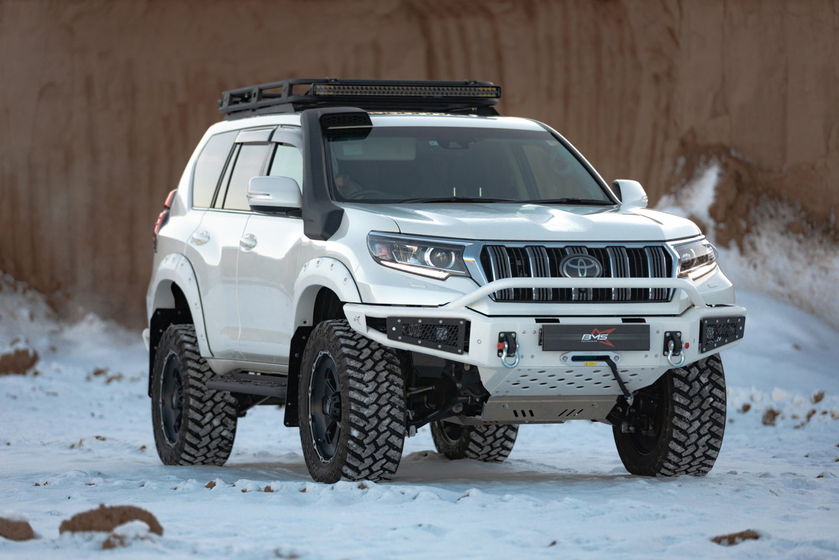 Внедорожная мощь и стиль Toyota Prado от нашего Новосибирского дилера BMS Engineering не может оставить равнодушным поклонников offroad тюнинга. В качестве тяжелой артиллерии плюсом к внушительному комплекту силового обвеса и подвеске BMS, а также дополнительному свету, на Toyota Land Cruiser Prado были установлены сразу две лебедки 4REVO TRX 10 000 – в передний и задний бамперы. Автомобильная 12-Вольтовая электрическая лебёдка 4REVO TRX с синтетическим тросом, направляющим алюминиевым клюзом, возможностью подключения проводного и радиоуправления оснащена силовым предохранительным устройством от перегрузки по току, что гарантирует надежность и безопасность эксплуатации в самых сложных ситуациях.