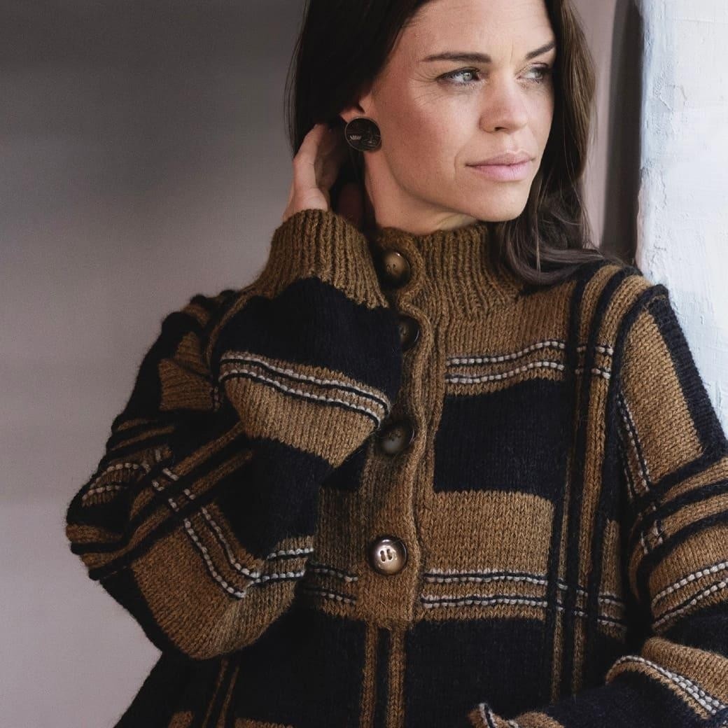 Жаклин Кеннеди Онассис была выдающейся иконой стиля, известной своей неподвластной времени элегантностью и утонченным вкусом. Ее чувство стиля продолжает оказывать значительное влияние на дизайнеров и любителей моды по сей день. В дополнение к своему утонченному внешнему виду в безупречно сшитых костюмах и платьях, она также использовала более непринужденную, шикарную эстетику, когда одевалась в мягкий и модный трикотаж. Размеры: S (M) L (XL). На окружность груди 86-95 (96-105) 106-115 (116-125) см. Окружность пуловера 123 (130) 139 (148) см. Длина по спинке 55 (55) 60 (60) см. Длина рукава 48 (47) 48 (47) см. Пуловер вяжется снизу вверх, спинка и перед вяжутся по отдельности, а плечи соединяются. Петли поднимаются вдоль края горловины и вяжется резинка воротника. На передней части и спинке пришиваются шнуры I-cord. Затем петли поднимаются вдоль выреза в середине переда и поднимаются к верхней части воротника. Планка вяжется двойной вязкой на этих петлях. Наконец, петли поднимаются вдо