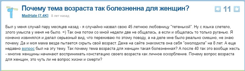 Недавно я зашла на один форум и увидела активное обсуждение темы, которая, как оказалось, волнует не только женщин, но и вызывает недоумение у мужчин — вопрос возраста.