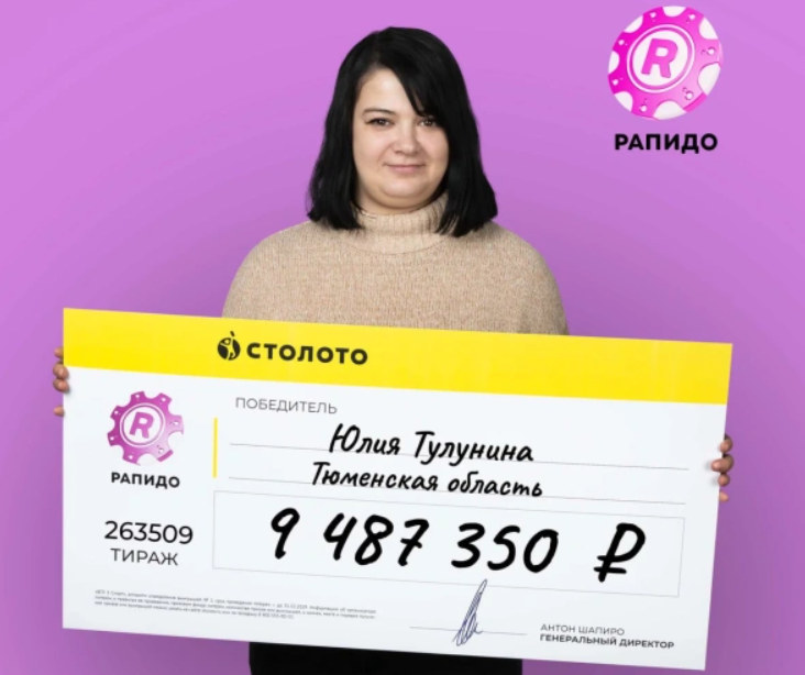 Многодетная мать из Тюмени Юлия Тулунина выиграла в лотерею 9,5 миллионов рублей. По ее словам, она выбирала только те билеты, которые содержали знаковые для нее числа, сообщили в пресс-службе «Столото». В тот день я зашла на сайт и увидела, что кто-то снял суперприз. Даже рассердилась и позавидовала победителю. Потом заметила в личном кабинете сумму выигрыша и поняла, что этим везунчиком оказалась я! Поделилась тюменка. Юлия воспитывает трех детей, а также работает заведующей складом. Приз она собирается потратить на приобретение более просторного жилья для своей семьи. В середине августа житель Тюменской области выиграл 33,6 млн рублей в лотерею «Спортлото 5 из 36» и исчез. Его искали больше двух недель, он пришел за выигрышем только в сентябре.